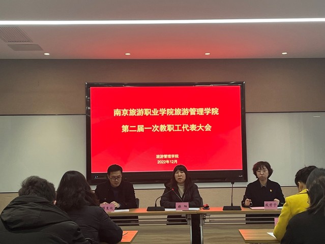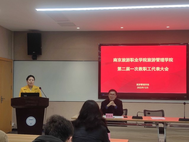 为进一步深化二级管理,促进学院高质量发展。2022年12月9日下午,旅游管理学院在行政楼111会议室举行了第二届教职工代表大会第一次会议,南京旅游职业学院副院长操阳,南京旅游职业学院工会副主席戚君子,旅游管理学院党政班子及全体教代会代表列席了此次会议。会议由分工会主席姜雯雯主持,