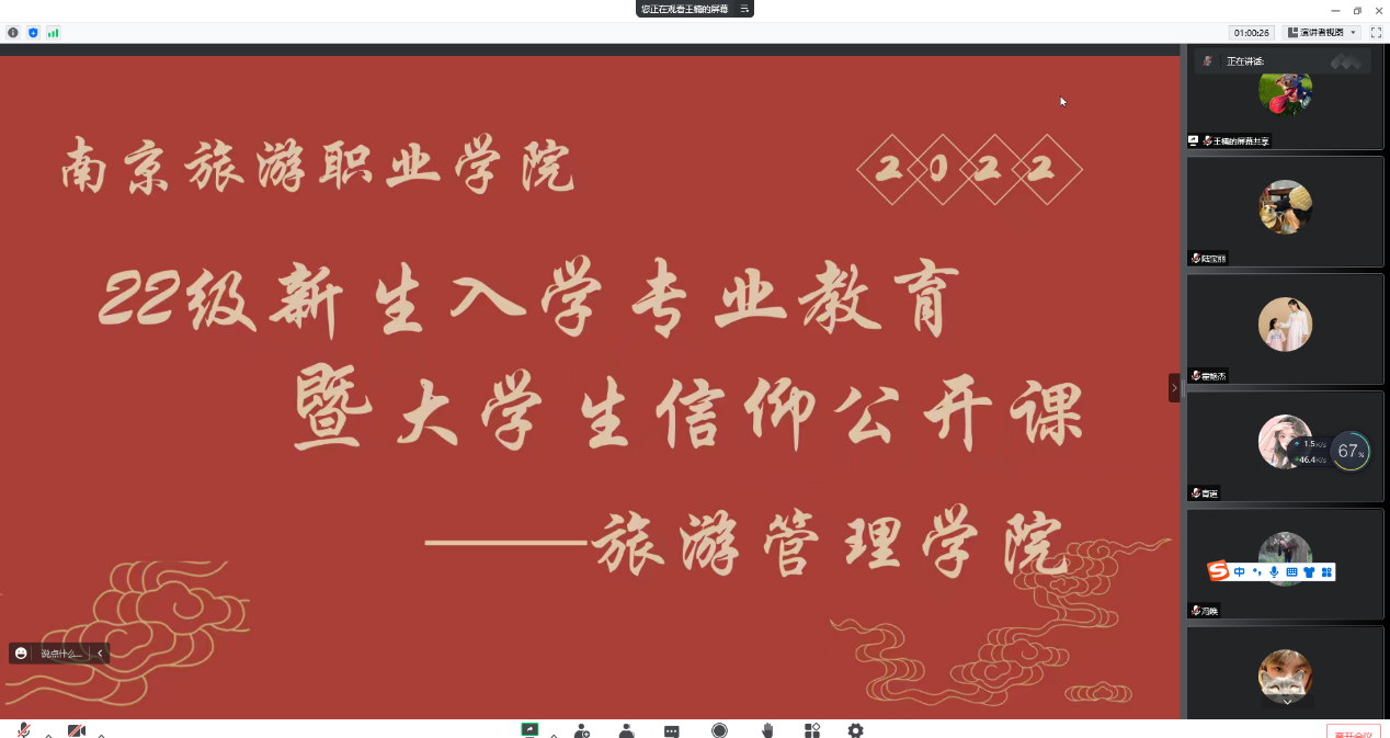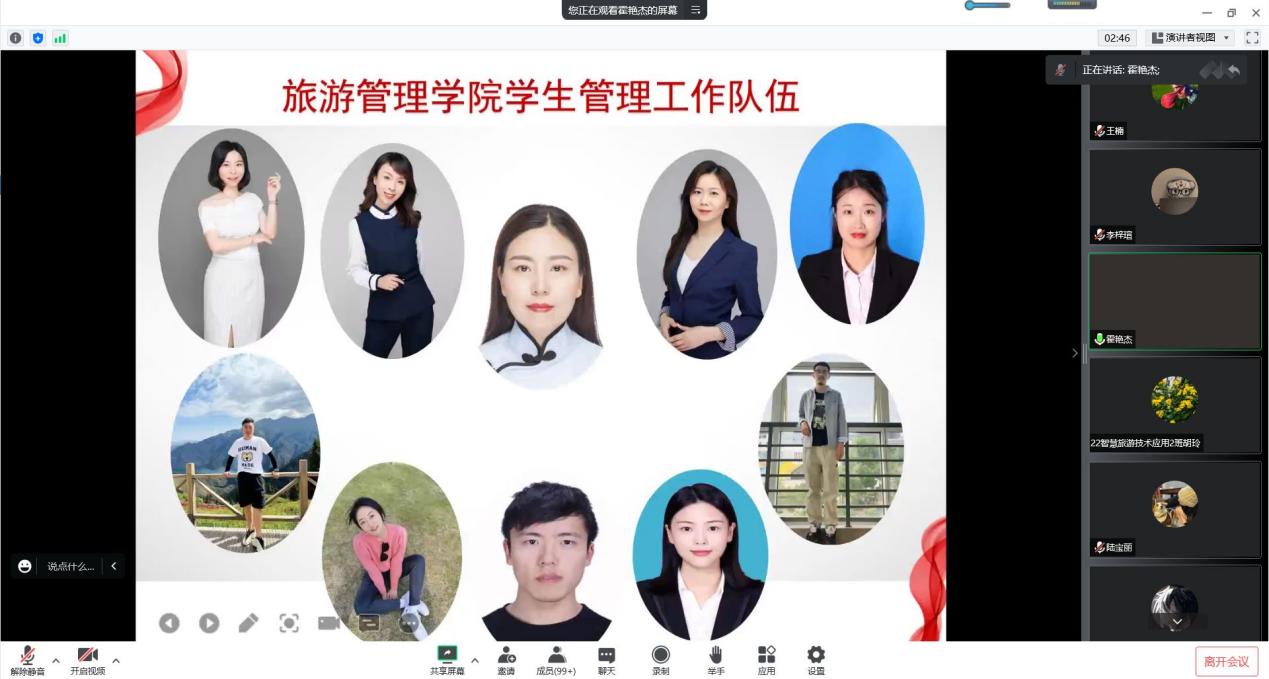 为帮助2022级新生尽快完成角色转换,扣好大学的第一粒纽扣,根据学校开学第一课的工作安排,9月20日,旅游管理学院于线上开展了2022级新生入学教育活动,学院党总支书记张岳军、副书记霍艳杰、全体辅导员以及2022级全体新生参加了此次活动。