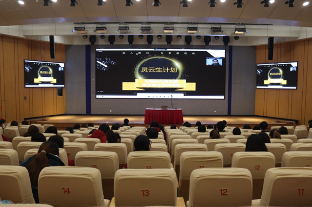 上午,我院邀请了拈花湾文旅集团的培训经理段咏嘉围绕着“灵云生项目”进行了专题讲解,采用了“线上+线下”相结合的模式进行,线下由拈花湾文旅集团旗下的南京金陵小镇项目总经理助理徐总参与互动、回答学生提问,极大的调动了同学们的积极性。讲座开始前,南京金陵小镇的舞蹈演员们带来了一段精彩的歌舞表演——风月缠绵,展现了金陵古风文化特色,紧接着我们连线了拈花湾文旅集团的段咏嘉经理,首先从企业的核心项目、发展规划及文化特色等方面介绍企业的发展概况,后续针对校企合作向同学们介绍了企业人才培养模式、职业发展路径、岗位晋升渠道等内容,使同学们明确自身发展方向,树立正确的职业发展观。