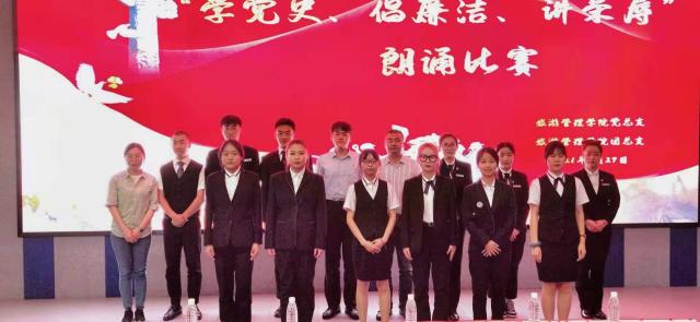 深入学习贯彻党的十九大精神,用习近平新时代中国特色社会主义思想武装头脑,进一步加强党风廉政建设,引导青年学生学党史、知党情、感党恩、跟党走,激发向善向上的正能量,倡导树立正确的价值观念、遵循正确的行为准则,旅游管理学院党总支、团总支于5月27日在教学楼报告厅举行“学党史、倡廉洁、讲荣辱”朗诵比赛。旅游管理学院党总支副书记(主持)、副院长张岳军、团总支书记潘鑫以及学生会主席团成员出席本次活动并担任评委。