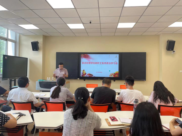 6月9日,旅游管理学院在3110智慧教室召开全体教职工集体政治学习会。我院全体教师参会,会议由旅游管理学院党支部副书记、副院长张岳军主持。