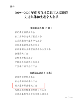 根据江苏省省直机关工会工作委员会发布的《关于2019-2020年度省直机构职工之家建设先进集体和先进个人的通报》,全省共评出“先进职工之家”27个,“优秀工会积极分子”105人。