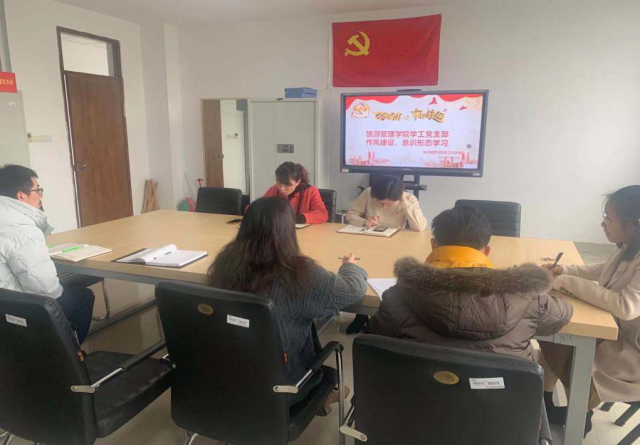 12月18日下午,旅游管理学院学工党支部在1301会议室举行意识形态专题党课暨集中政治学习会,会议由支部书记陈菊霞主持。