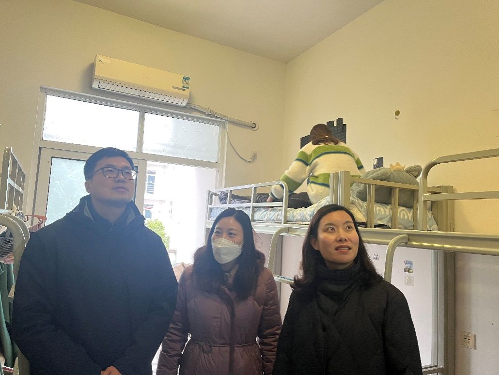 旅游管理学院院长顾至欣、副院长丁洁、党总支副书记霍艳杰为及时了解学生返校后的思想动态、生活情况及心理状况,确保开学工作有序开展、平稳推进,深入学生宿舍送温暖,全力保障暖心迎接学生返校,让学生充分感受到旅管院大家庭的爱。