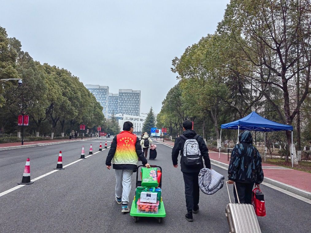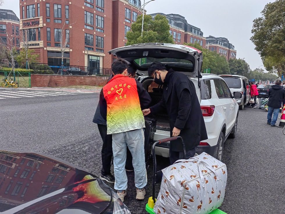 学院师生志愿者们早早到岗开展服务工作,以饱满热情的态度迎接同学们的到来。学生在校门口进行测温后有序地进入校园,穿着红马甲的志愿者穿梭在校园的各个角落,为同学们搬运行李,他们忙碌的身影为校园增添了生机与活力,也让返校的同学心中倍感温暖。