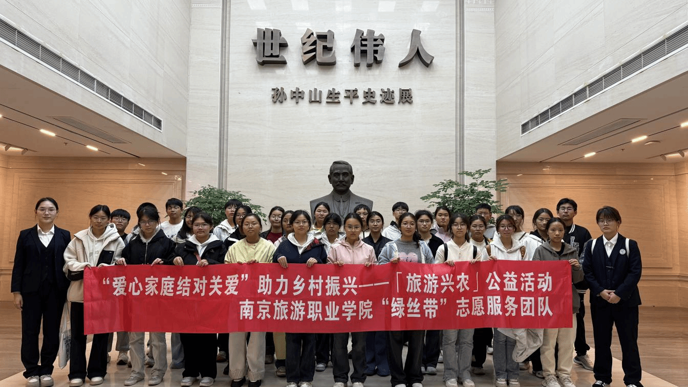 2025年11月8日,得益于江苏省侨联、南京市侨联等多方协调,旅游管理学院“绿丝带”「旅游兴农」公益创业团队与兴化大垛中心校师生一行结伴前行,在中国华侨国际文化交流基地-孙中山纪念馆、江苏省华侨文化交流基地-南京旅游职业学院酒店博物馆、南京市华侨文化交流基地-宝船厂遗址公园,进行了一场侨文化主题沉浸式学习交流。