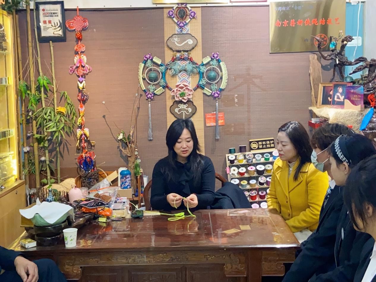 12月1日,旅游管理学院学工党支部、团总支、二级关工委共同组织青年师生前往南京市非物质文化遗产绳结代表性传承人蒋妍侠工作室学习体验非物质文化遗产绳结技艺,院关工委驻会秘书长谢晓美、旅游管理学院党总支副书记霍艳杰、旅游管理学院关工委副主任朱林生及学工党支部党员教师和优秀团员学生同参与了本次学习活动。