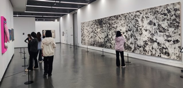 本次活动重点参观位于文化中心3楼的“基因·演化——2024南京当代水墨展”,感受当代水墨艺术独特的生长基因与演化逻辑,领略水墨画在当代社会中的文化符号和文化精神,体会水墨艺术家们对传统文化和现代社会的深刻思考。大家在一件件作品前驻足流连,既见识到中国艺术的源远流长,又惊叹于中国当代水墨融贯古今、会通中外的承载力与包容性。