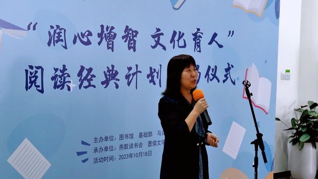 10月18日下午,“润心增智 文化育人”阅读经典计划启动仪式在图书馆隆重举行。学院党委副书记、院长操阳,院党委委员、副院长张骏,院党委委员、组织人事处处长王茂盛,各二级学院(部)负责人,图书馆全体职员,以及燕歌读书会、墨儒文学社的40名学生代表们参加了本次活动。