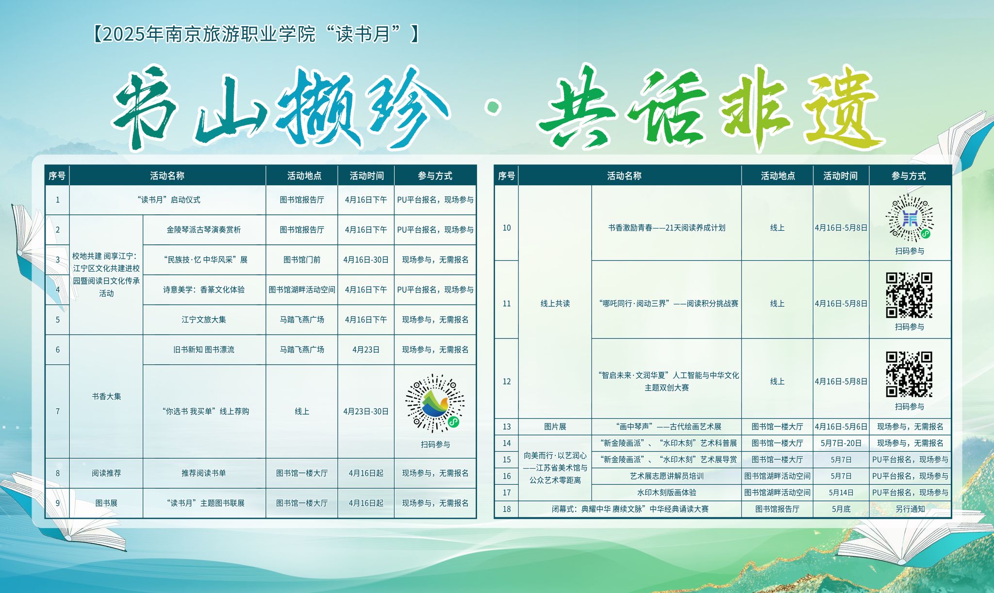 南京旅游职业学院2025年“书山撷珍·共话非遗”读书月活动安排